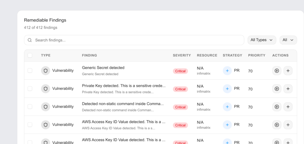 ✓ One-click patches and ready-to-merge PRs for common misconfigs