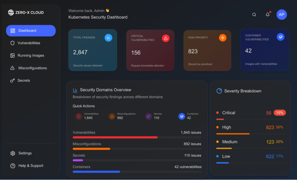 Zero-X is a unified security platform that protects your applications, code, and cloud environments with continuous monitoring, vulnerability detection, compliance checks, and automated remediation.