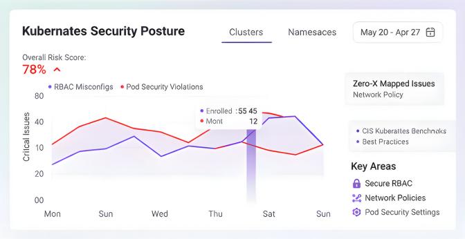 Detect misconfigurations across clusters, namespaces, and workloads. Zero-X maps issues to CIS Kubernetes Benchmarks and best practices, helping teams secure RBAC, network policies, and pod security settings.